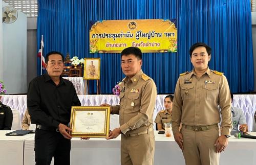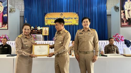 2.2 บ้านพร้าวใหม่พัฒนา หมู่ที่ 13 ตำบลปงเตา อำเภองาว จังหวัดลำปาง รับมอบเกียรติบัตรโดย นายนพดล แสงสีจันทร์ ผู้ใหญ่บ้าน หมู่ที่ 13 ตำบลปงเตา