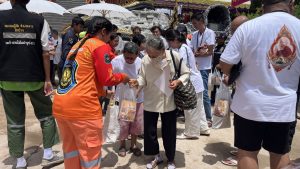 วันพฤหัสบดีที่ 14 สิงหาคม 2568 เวลา 10.00 น. พิธีถวายมุทิตาสักการะ เจริญอายุมงคลวัฒน์ เจริญอายุมงคลวัฒน์ ครบ 4 รอบ 48 ปี 28 พรรษา พระครูวินัยธรอานนท์ อานนฺโท (พระครูบาศักดิ์) กิจกรรม การมอบถุงยังชีพและเงินสงเคราะห์ให้แก่ครัวเรือนเป้าหมายตกเกณฑ์ TPMAP ประจำปี 2568 และครัวเรือนยากจน/ด้อยโอกาสในพื้นที่อำเภองาว จังหวัดลำปาง นายสมจิตร จุลเจริญ นายอำเภองาว ร่วมด้วยพระครูวินัยธรอานนท์ อานนฺโท (พระครูบาศักดิ์) ม่อนทรายทองโพธิสัตว์ ตำบลแม่ตีบ ดำเนินการมอบถุงยังชีพและเงินสงเคราะห์ให้แก่ครัวเรือนเป้าหมายตกเกณฑ์ TPMAP ประจำปี 2568 และครัวเรือนยากจน/ด้อยโอกาสในพื้นที่อำเภองาว จังหวัดลำปาง รวมจำนวน 350 ชุด เนื่องในพิธีถวายมุทิตาสักการะ เจริญอายุมงคลวัฒน์ เจริญอายุมงคลวัฒน์ ครบ 4 รอบ 48 ปี 28 พรรษา พระครูวินัยธรอานนท์ อานนฺโท (พระครูบาศักดิ์) ณ ม่อนทรายทองโพธิสัตว์ ตำบลแม่ตีบ อำเภองาว จังหวัดลำปาง ในการนี้ นางวิลัยลักษณ์ ม่วงงาม พัฒนาการอำเภองาว พร้อมด้วยเจ้าหน้าที่พัฒนาชุมชน เจ้าหน้าที่เครือข่ายกองทุนหมู่บ้านและชุมชนเมืองแห่งชาติ (กทบ.) และอาสาพัฒนา (อสพ.) ร่วมด้วยผู้นำอาสาพัฒนาชุมชนตำบลบ้านโป่ง ตำบลปงเตาและตำบลนาแก ได้เข้าร่วมกิจกรรมดังกล่าวด้วย