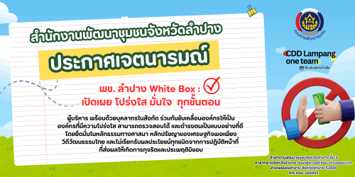 📝 พช.งาว ประกาศเจตนารมณ์ พช.ลำปาง White Box : เปิดเผย โปร่งใส มั่นใจทุกกขั้นตอน